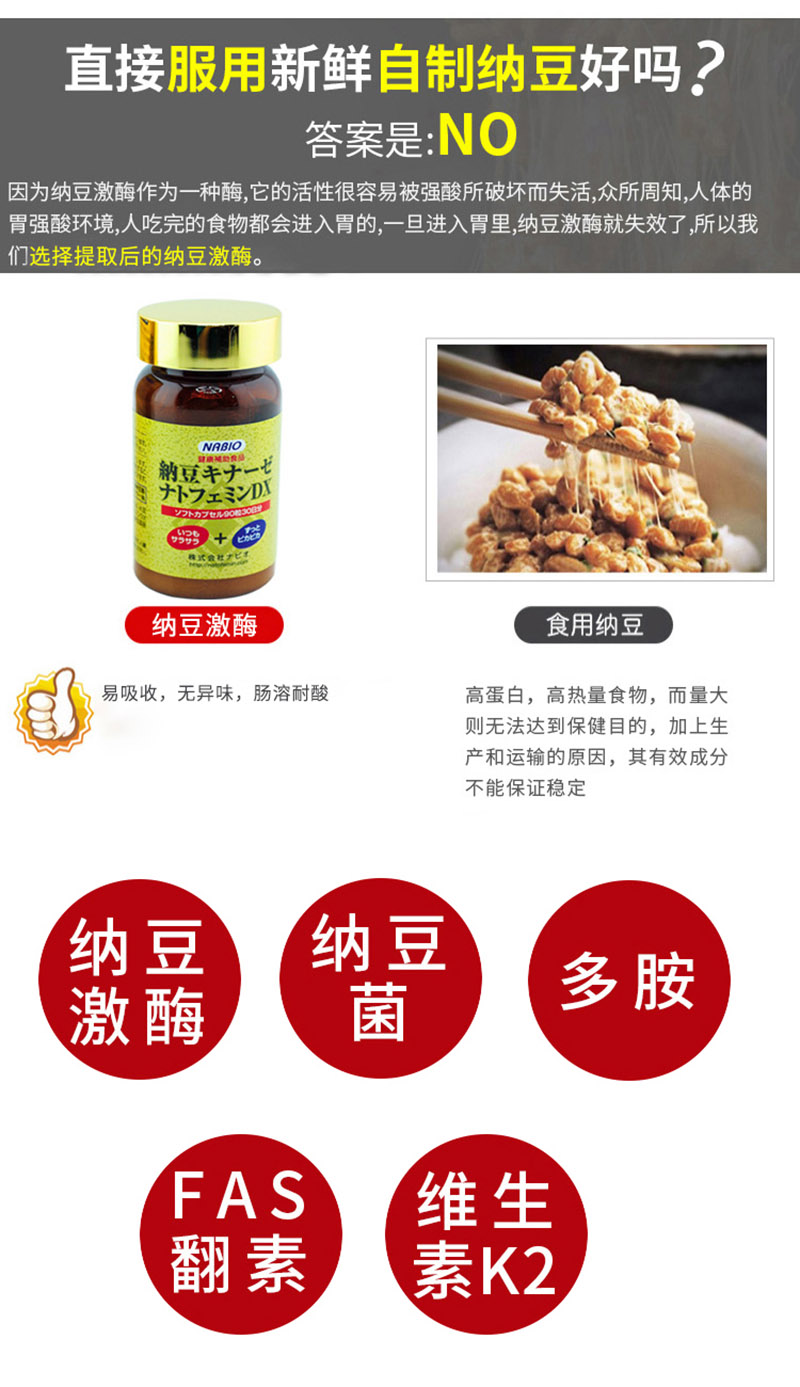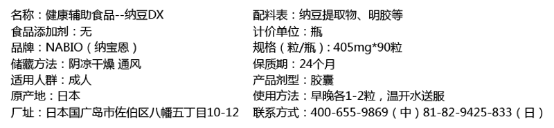 納豆激酶、FAS(翻素)、維生素K2、多胺、納豆菌、維生素B族、EPA、DHA等
