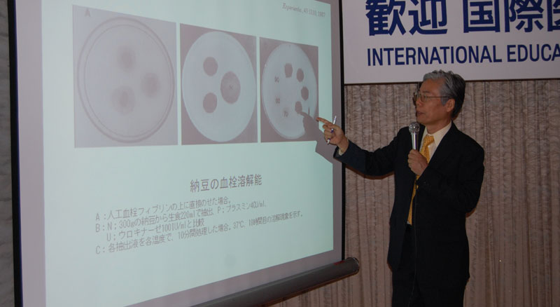 上圖為須見洋行教授講解納豆激酶的溶栓機理