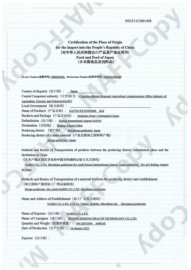 采用優(yōu)良的純種納豆菌發(fā)酵,而非曲霉菌。用后者制成的產(chǎn)品成本很低,安全性未知,且沒有得到臺灣、日本納豆激酶協(xié)會的認(rèn)可。而且本公司的納豆激酶粉末,其中不是單一的納豆激酶,同時還含有了納豆發(fā)酵過程中自然產(chǎn)生的其他有效成份,多成份的同時提取,不管是在技術(shù)上要求很高,而且在功能上有了很大提高,要遠(yuǎn)遠(yuǎn)高于市場上的同類原料。