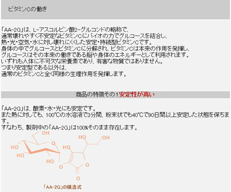 維生素C衍生物“AA-2G”的特征: