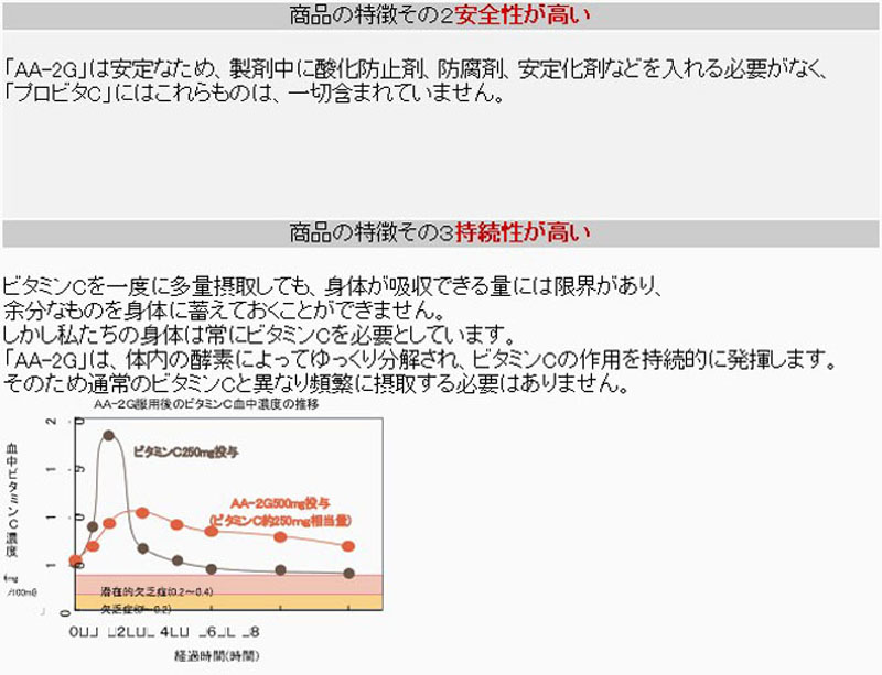 根據(jù)日本食品衛(wèi)生法第6條的規(guī)定,取得許可,2005年7月開始AA-2G作為營養(yǎng)品的維生素C(PROVITAC)顆粒進(jìn)行銷售。